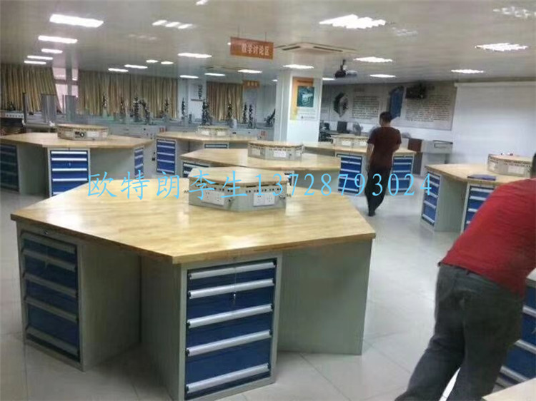 (2)柜子材料1.0厚的四個(gè)抽屜,定制實(shí)訓(xùn)六角工作臺(tái),單軌每只抽屜均承重50公斤,臺(tái)面均承重600公斤.